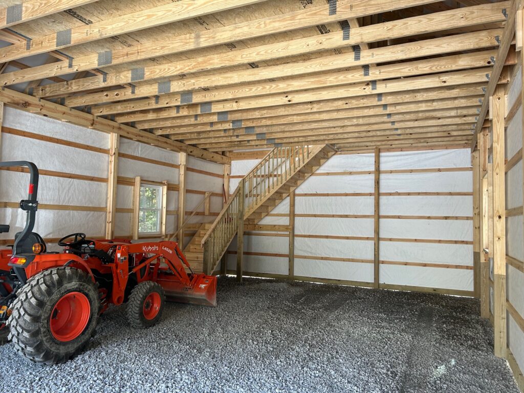 Built with attic trusses and a full floor system, it delivers both elevated design and added functionality. Large twin-unit windows in each gable peak top it all off— giving the building a refined, finished look.
