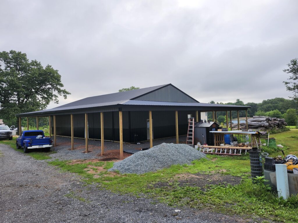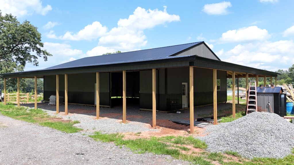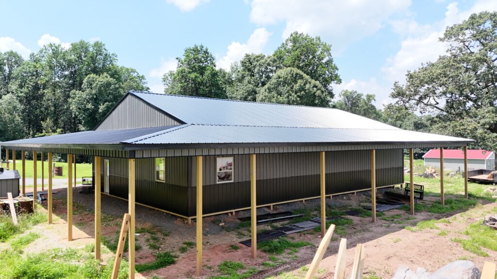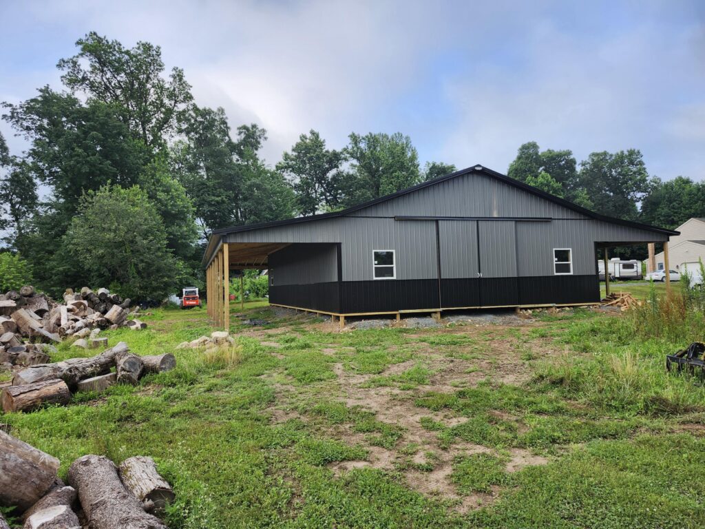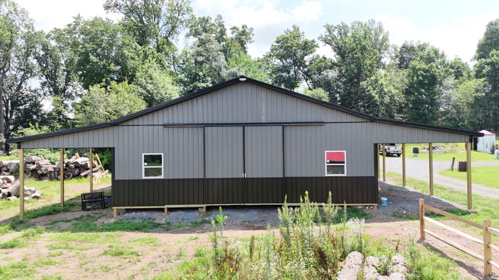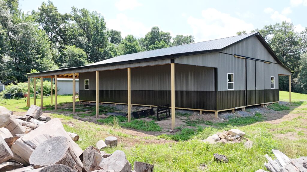 This charcoal-and-black stunner brings both function and flair to the table. The 40×60 main structure features 12′ interior height, dual sliding doors (12×12 & 12×10), and four oversized windows to let in plenty of natural light.