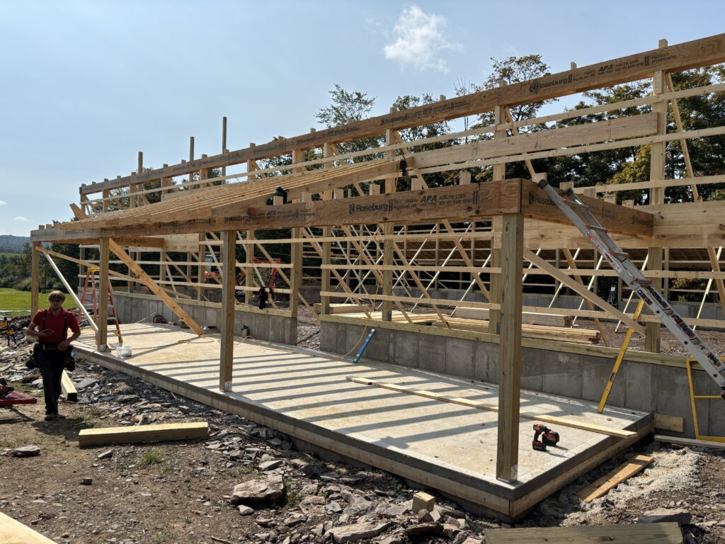 Back Lean-To: 12′ x 92′ with a 4/12 pitch