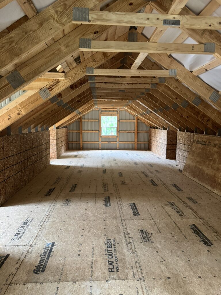 This 30′ x 40′ garage is a standout with its 8/12 roof pitch, front-facing dormers, and full attic trusses. It not only looks sharp but also offers plenty of upstairs space for storage or a future hangout area.