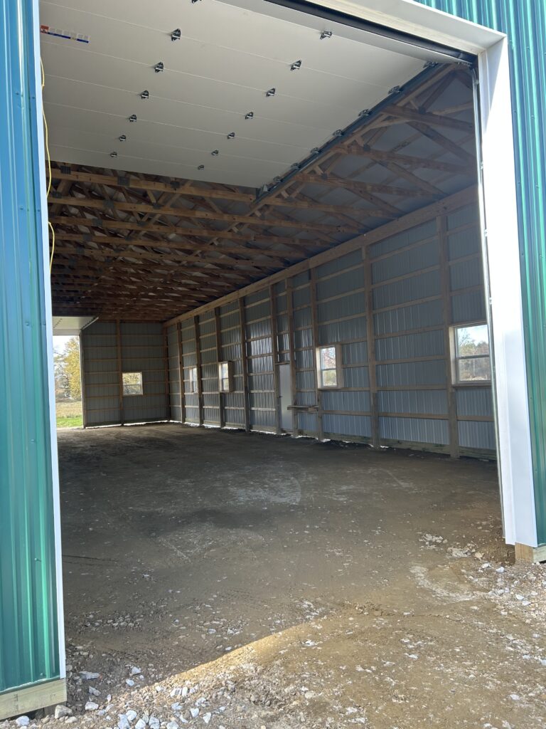 This 40′ x 80′ post-frame storage building offers serious space and a timeless look. It features two large overhead doors for easy equipment access and twelve windows to let in plenty of natural light. The clean Ivy and white color scheme blends well in any rural or agricultural setting, making it ideal for long-term storage, workspace, or future flexibility.
