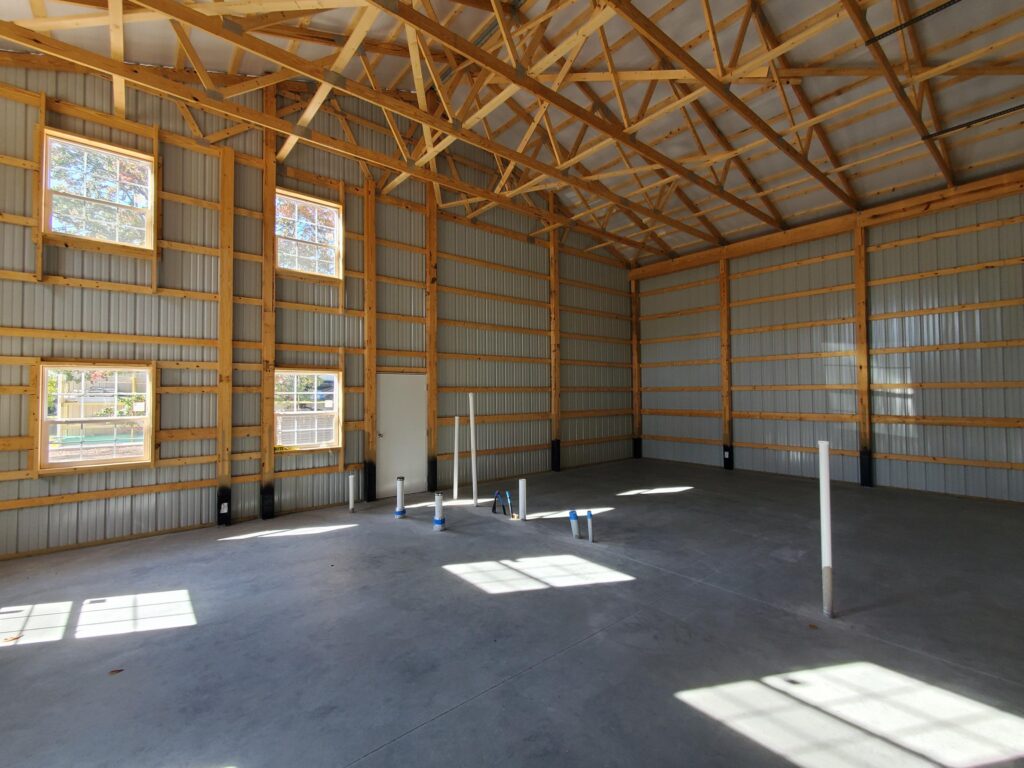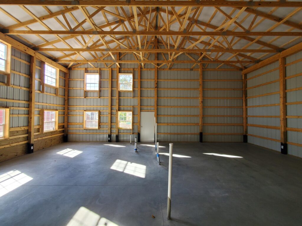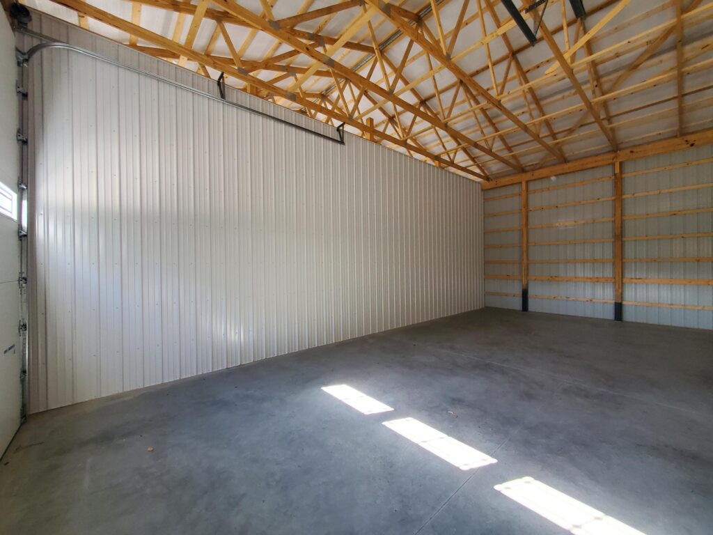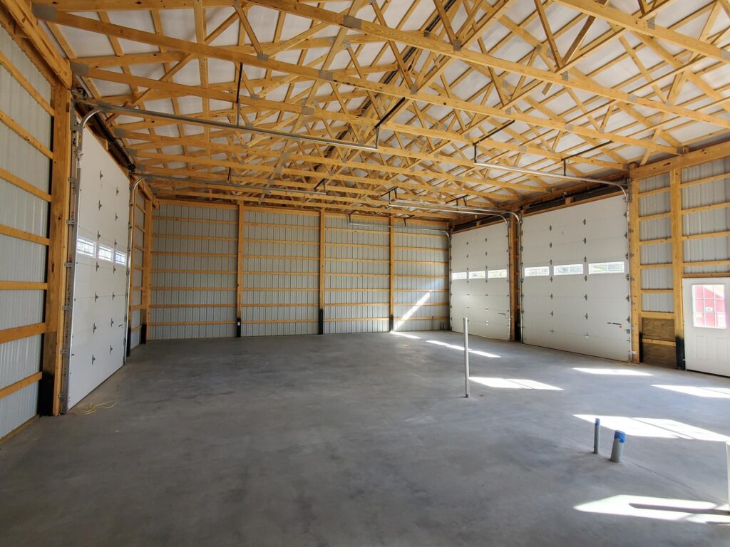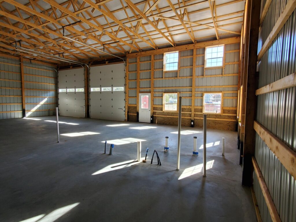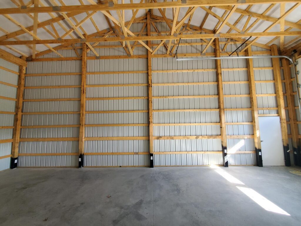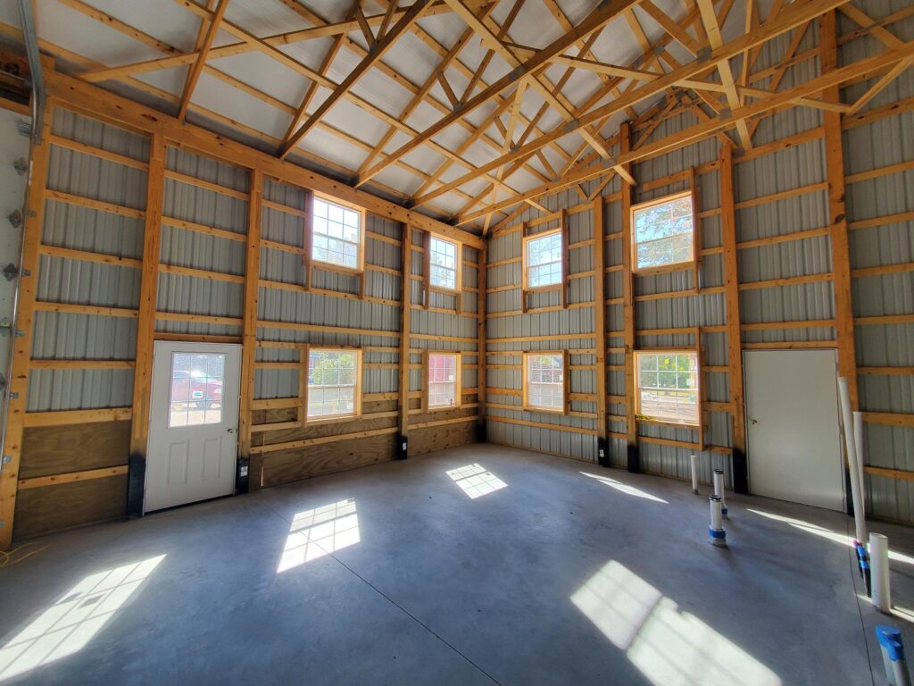 This head-turning commercial project proves just how versatile post-frame construction can be. With four large overhead doors along the front eave & a fifth on the back eave, the right half of this building offers warehouse space for a growing business. Inside, a dividing wall splits the interior to create functional office space and a future upstairs loft — complete with first- and second-floor windows that let in plenty of natural light.