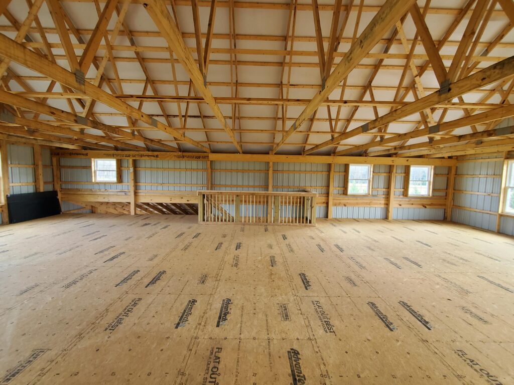 This barn is a true standout. Designed to serve as an event venue, it blends rustic charm with a modern farmhouse look that captures attention. From the sharp 8/12 roof pitch and steel-clad X-buck doors to the wide lean-tos and a full second floor with plenty of windows, this build is ready to host memories for years to come.