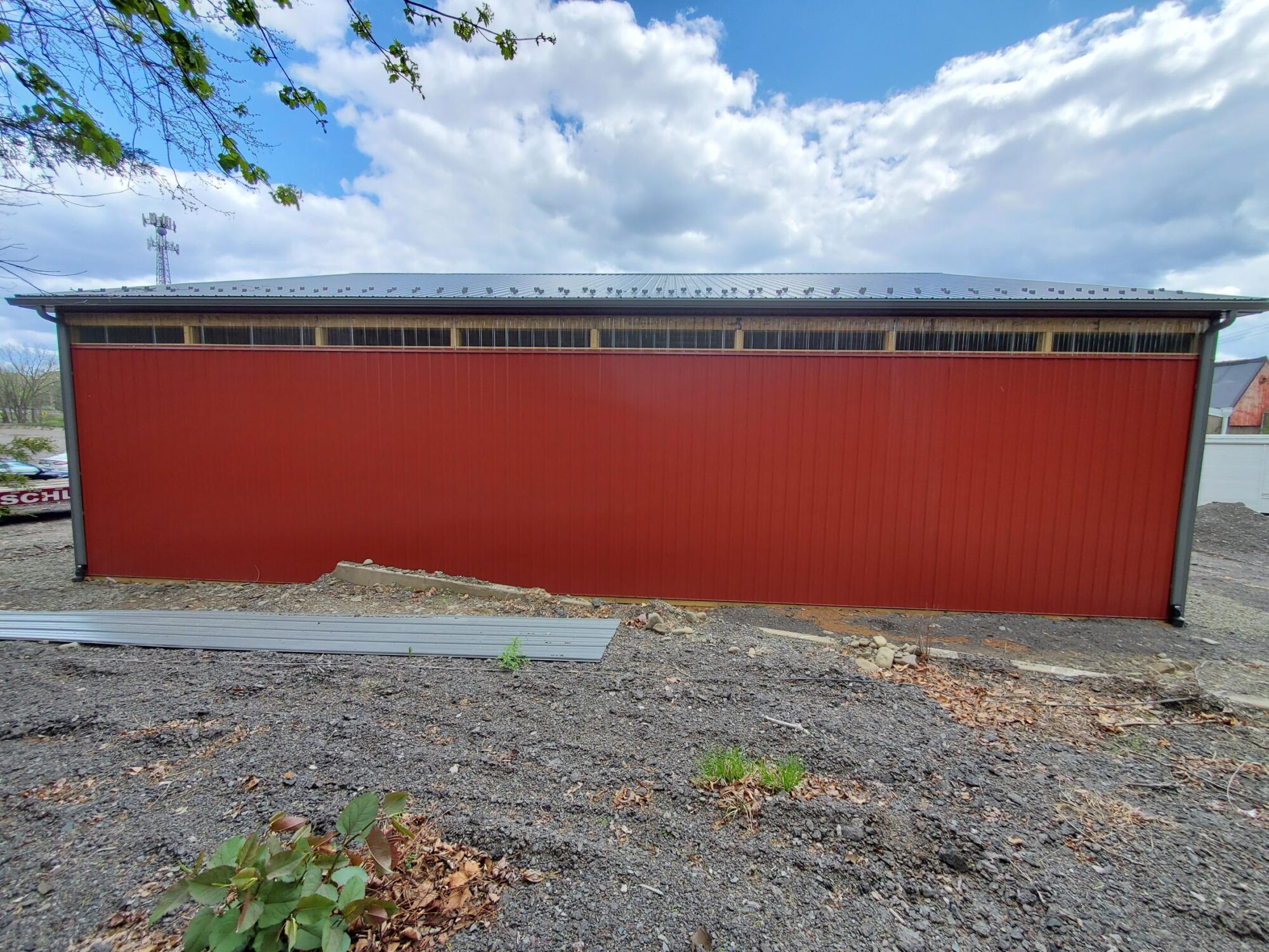 There’s a 2′ high Clear Sidelight Belt in the rear to naturally illuminate the interior of the building. Snow Guards and 6 Inch seamless gutters carry the rainwater away. The 6″ Concrete Floor provides the base needed for the big trucks to rest easy at night. What a gorgeous project !!
