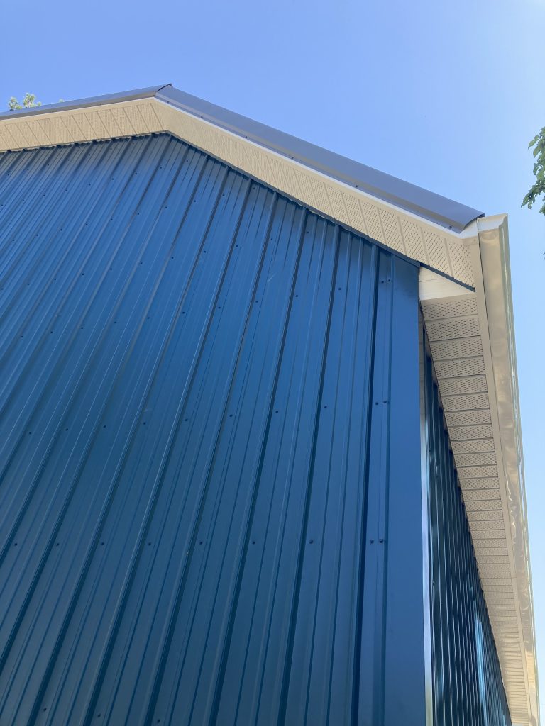 But back to the specs on this gorgeous building …. If you look closely at the attic pictures you’ll notice a white backing to the underside of the roof metal. That’s called Solex Insulation. We love to install that under our metal roofs for numerous reasons. One it provides a bright, clean interior finish. Secondly, it doesn’t allow frost to adhere to the underside of the metal and therefore completely eliminates any chance of condensation. It also provides some additional tempering of sound in a pounding rainstorm. Doesn’t hurt to knock a little bit of chill off in the wintertime either. It’s a very low cost option to add and one we highly recommend.